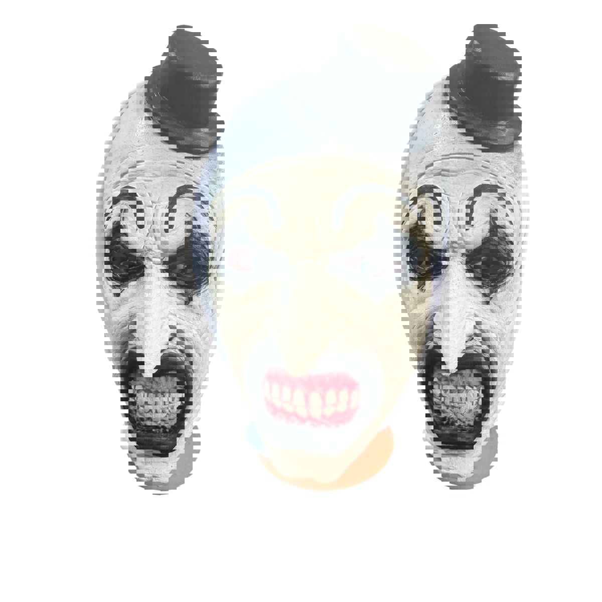 Transforme sua fantasia com esta máscara de palhaço aterrorizante, perfeita para Halloween, festas temáticas e eventos de terror. Com detalhes realistas e expressão intensa, ela garante causar impacto imediato e despertar emoções fortes. Feita em látex, material resistente e confortável, oferece fácil ajuste e durabilidade para uso prolongado. Destaque-se com o design único que combina pintura facial sombria e um mini chapéu estilizado, dando um toque exclusivo à sua aparência assustadora. Ideal para quem busca um visual perturbador e autêntico, essa máscara é a escolha certa para impressionar e assustar com estilo.