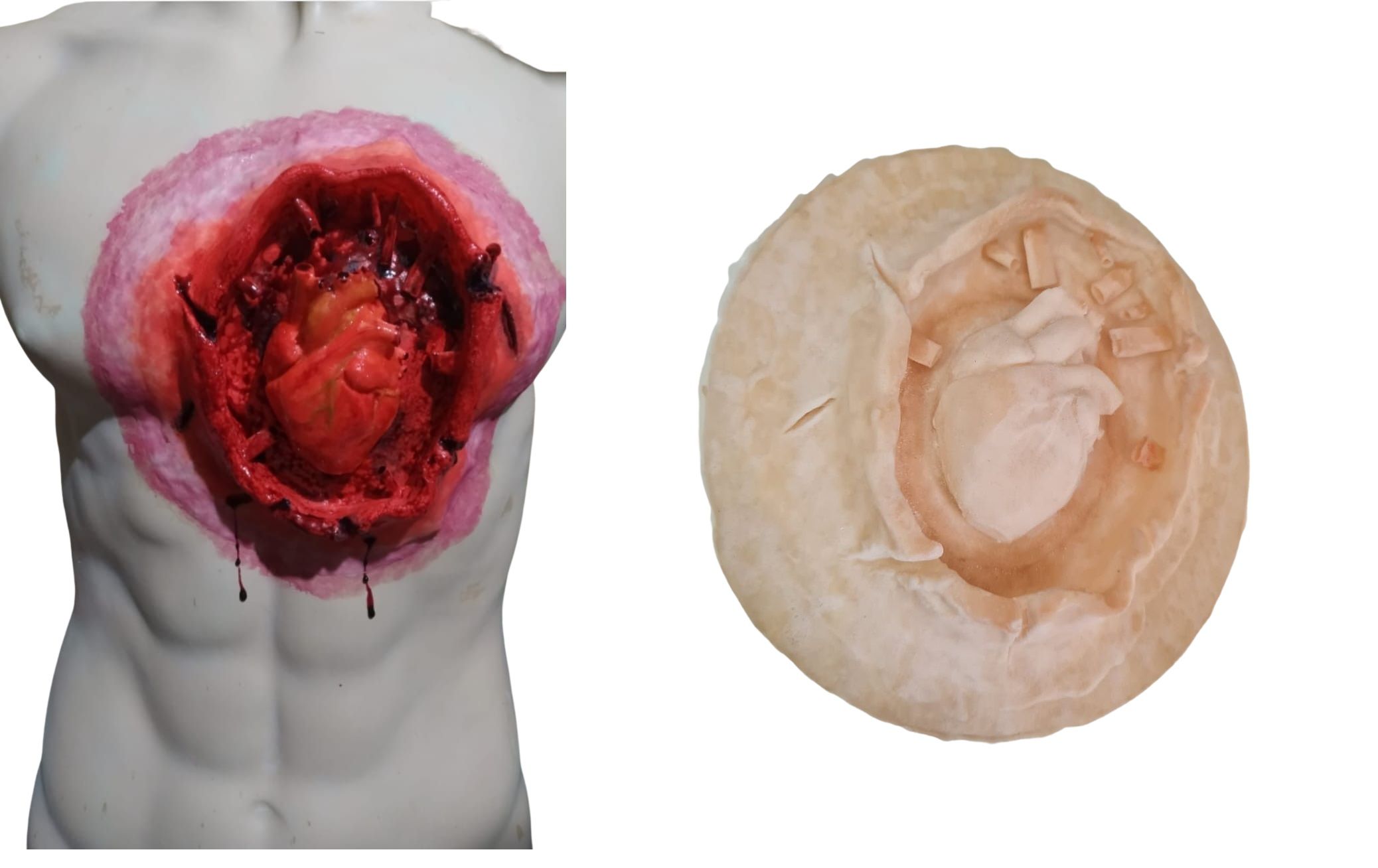 Maquiagem Ferida Coração Grande em Latéx + Sangue+ Látex